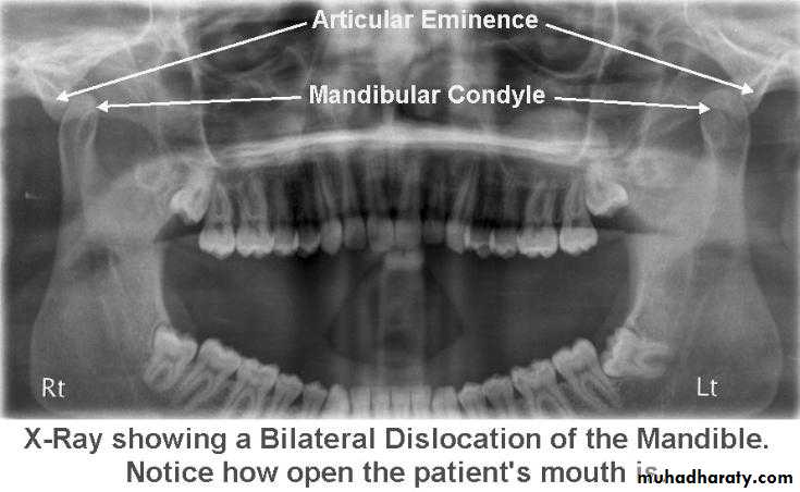 Radiography confirms a clinical diagnosis.The condyle may translate beyond the articular eminence normally, without a dislocation, so clinical information is essential. The condyle will be anterior and superior to the ‘summit’ of the articular eminence.
