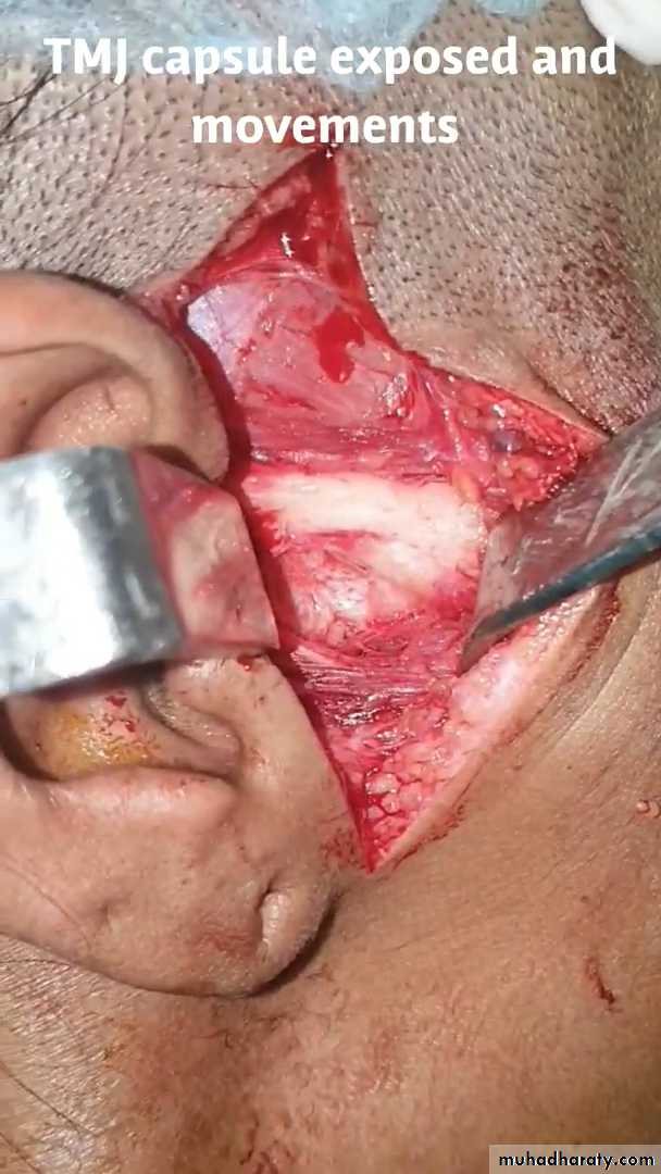 • The ankylosed mass is removed and the mandible is checked for mobility. Care has to be taken that there is no obstruction in the mandibular movements.