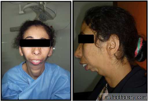 • Developing anterior open bite and retrusion of chin in advanced disease.