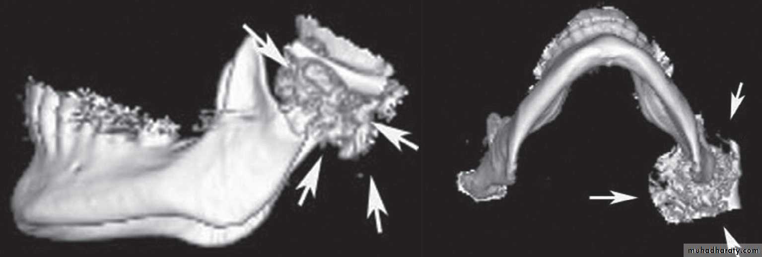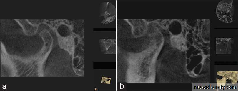 # Marked erosion of the condylar head and articular fossa.