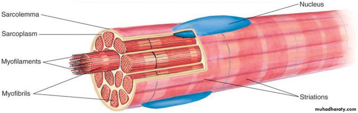 Skeletal muscle fibers are long, cylindrical ,multinucleated cells ,with