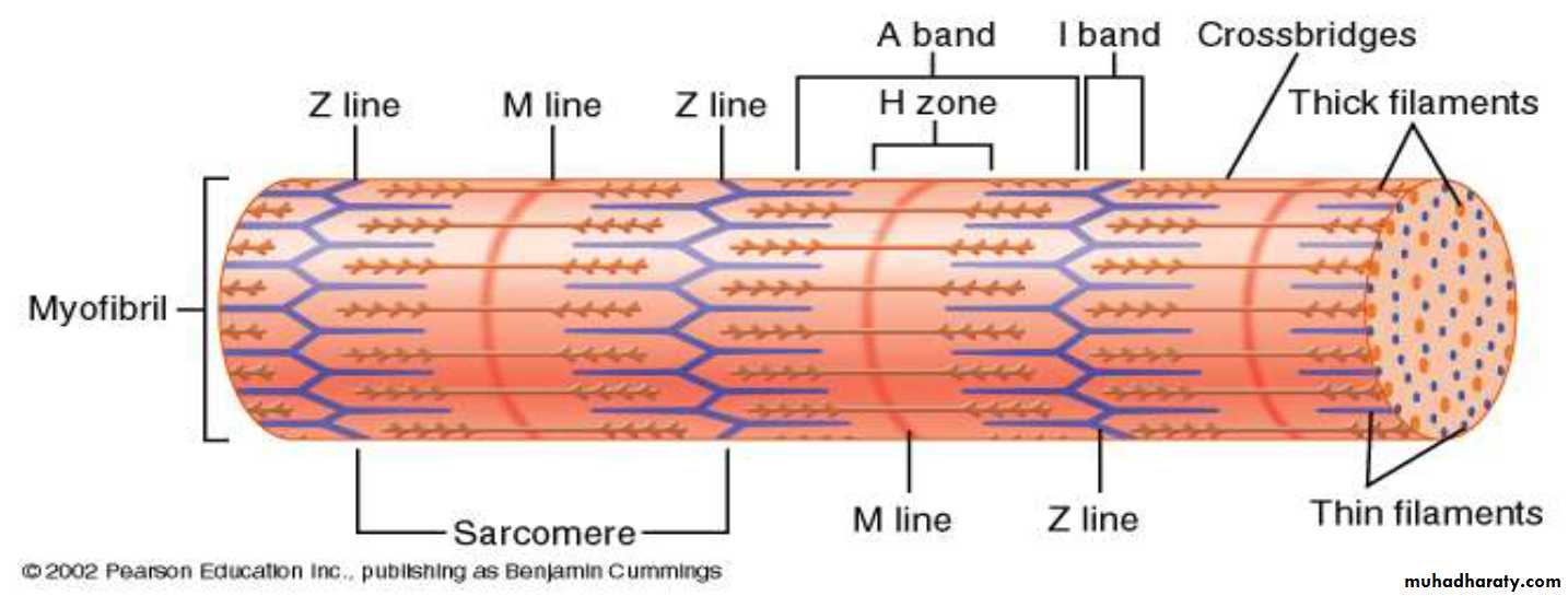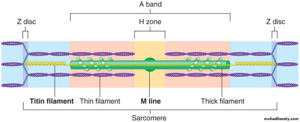 –Light area at center of A band is H zone ( area where there are no thin myofilaments)
