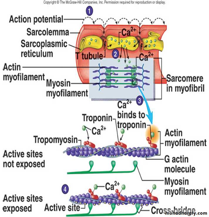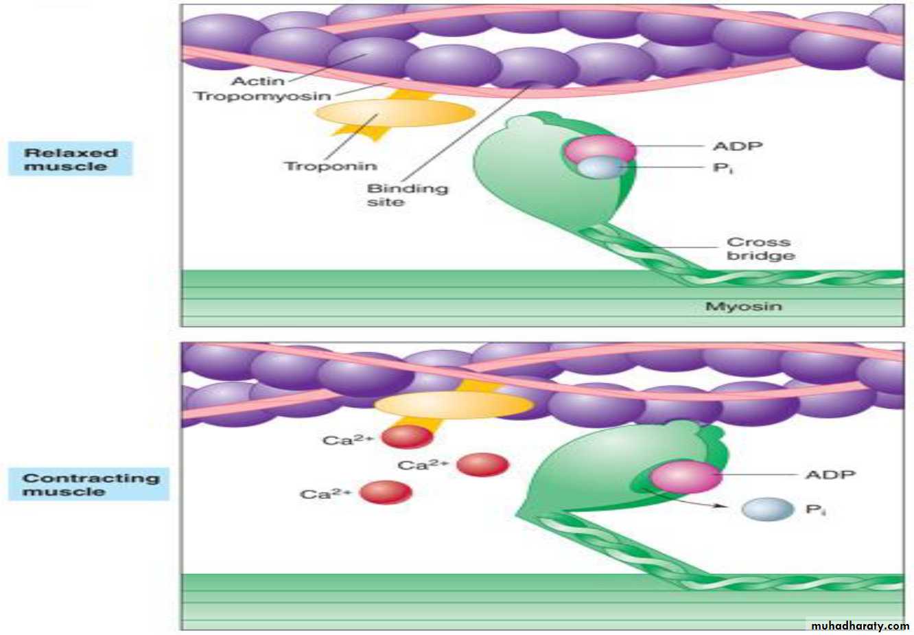 –Allows crossbridges to connect and contraction to occur , Crossbridge cycles stop when Ca++levels decrease