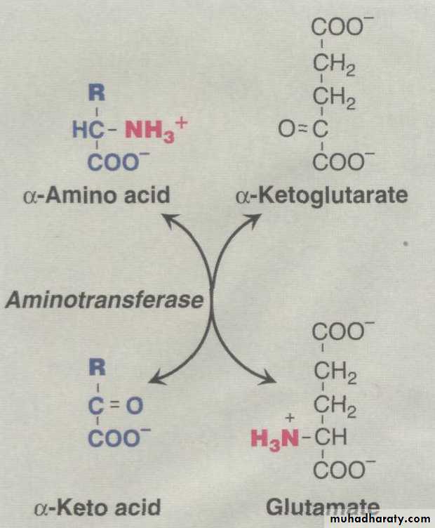 Transamination:The first step in the catabolism of most amino acids is the transfer of their α-amino group to α-ketoglutarate