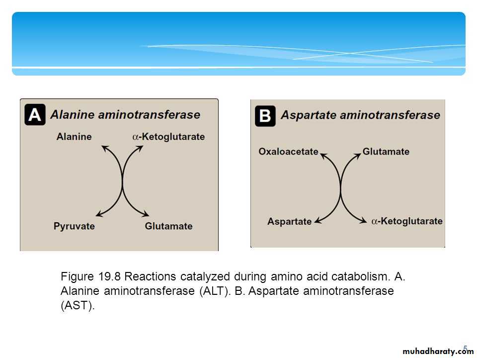 The two most important aminotransferase reactions are catalyzed by alanine aminotransferase (ALT) and aspartate aminotransferase AST: