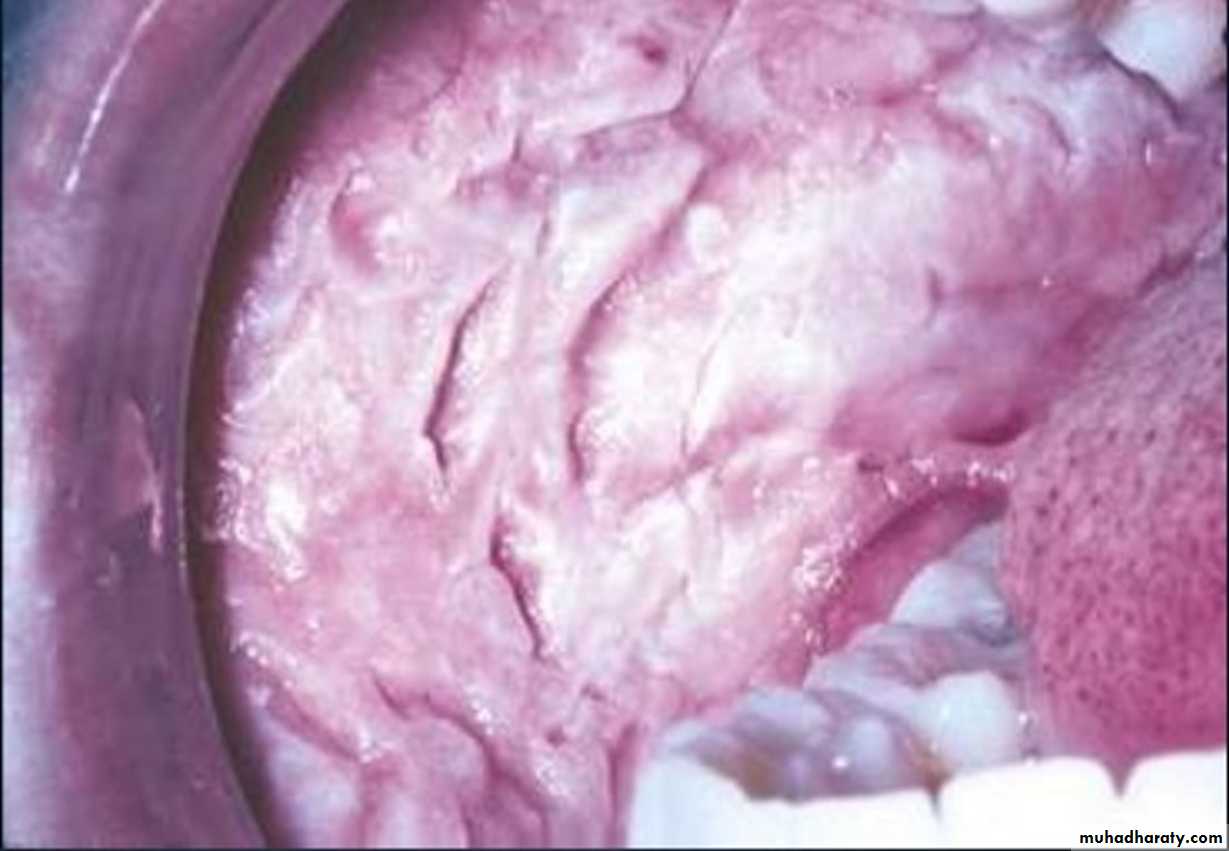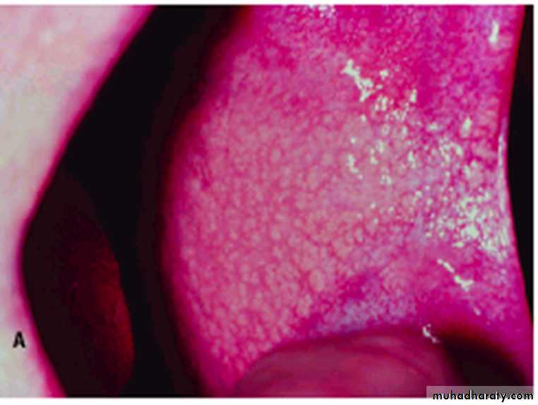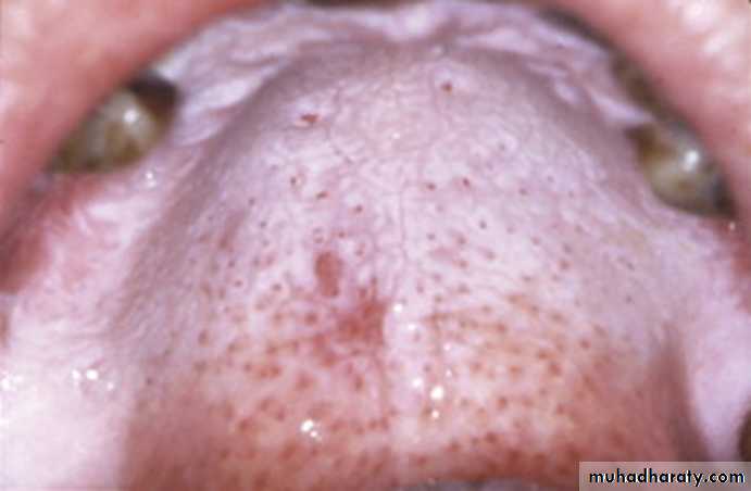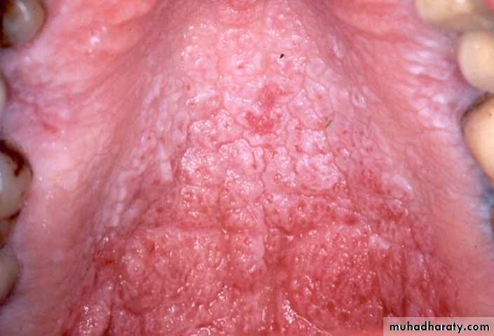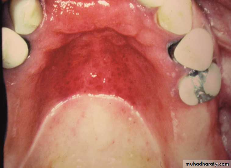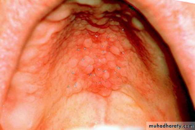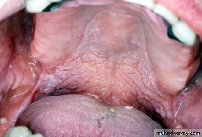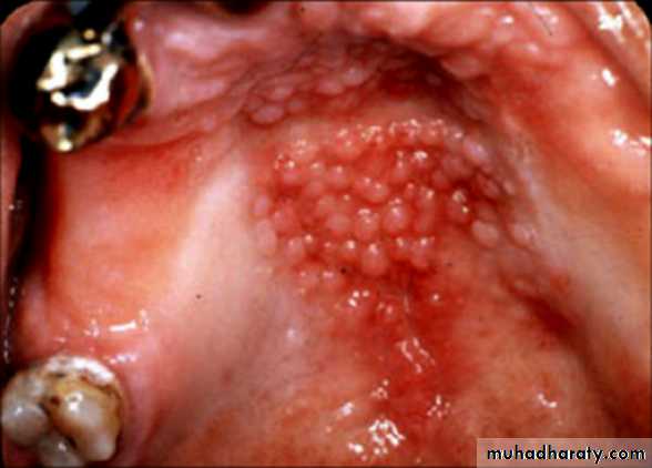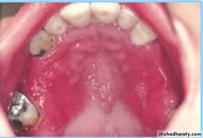 •Nicotinic stomatitis (stomatitis nicotina)
