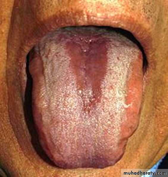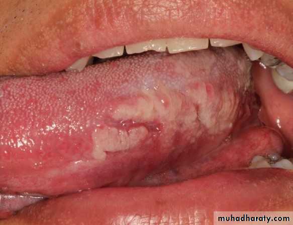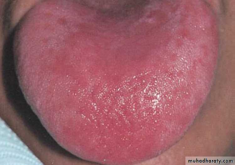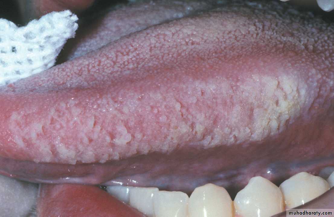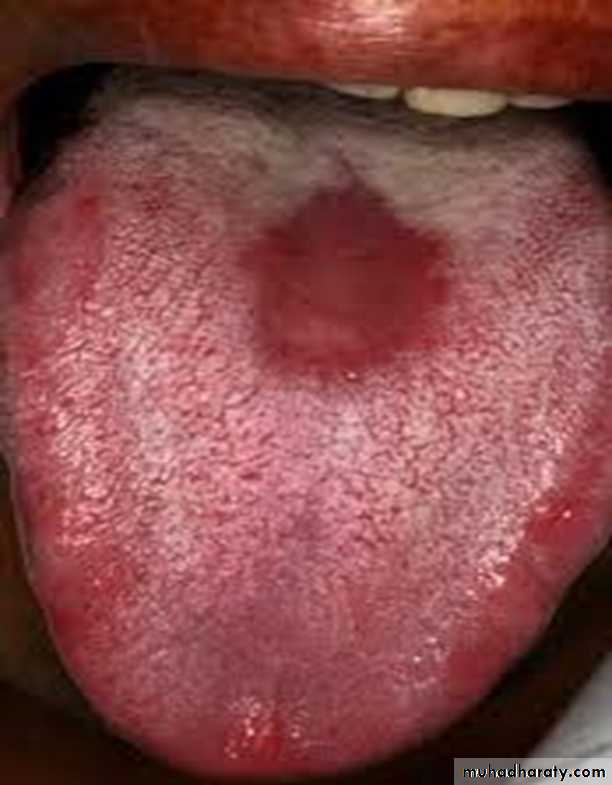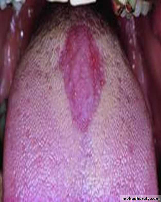 Central papillary atrophy of the tongue or Median rhomboid glossitisErythematous candidiasis