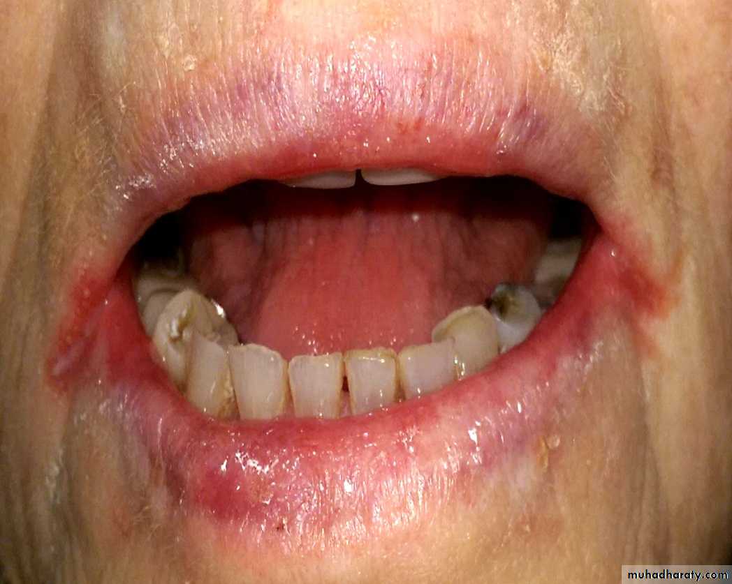 Angular cheilitis (Angular stomatitis, Cheilosis, Perleche)Erythematous candidiasis