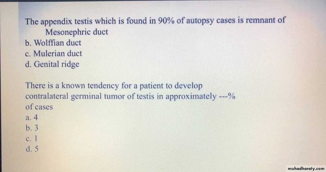 3-Others like spermatocel, hematocele, granulomatous orchitis, most commonly result from tuberculosis.