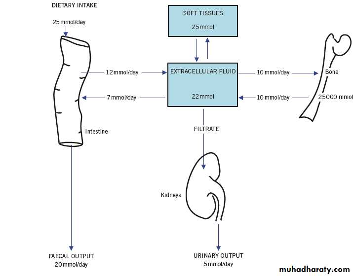 * Factors affecting calcium intakeAbout 25 mmol (1gm) of calcium is ingested per day ,