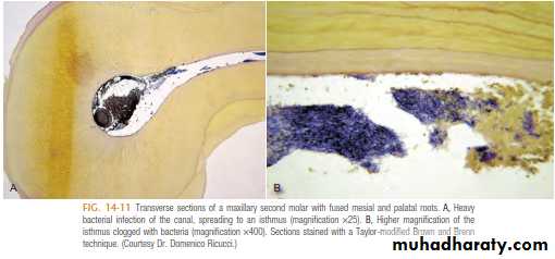 • protected from the host defenses because of lack of active blood circulation in the necrotic pulp tissue.