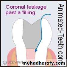and in teeth left open for drainage.Microorganisms can penetrate the root canal system even after completion of the root canal obturation by: