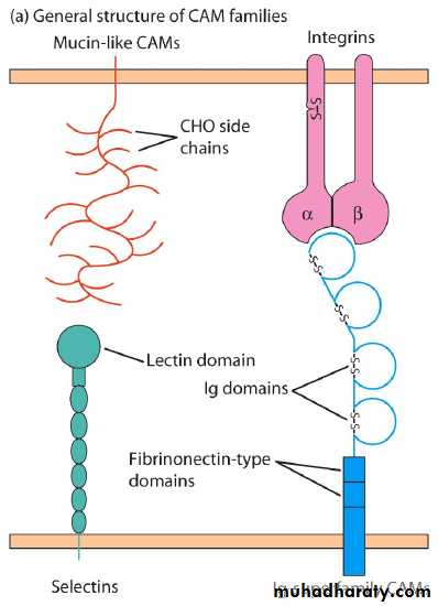 Normally the binding affinity of the integrins for the cell adhesion molecules (CAMs) are constitutively expressed, while other are specifically induced on particular endothelia, or at sites of inflammation.