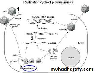 Replicate in the cytoplasm of the cell.They are not inactivated by lipid solvent, such as ether, because they do not have envelope.