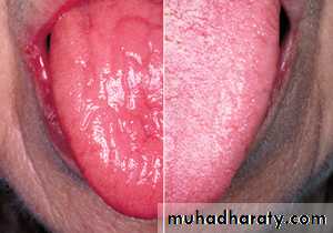• Depapillation of the tongue: