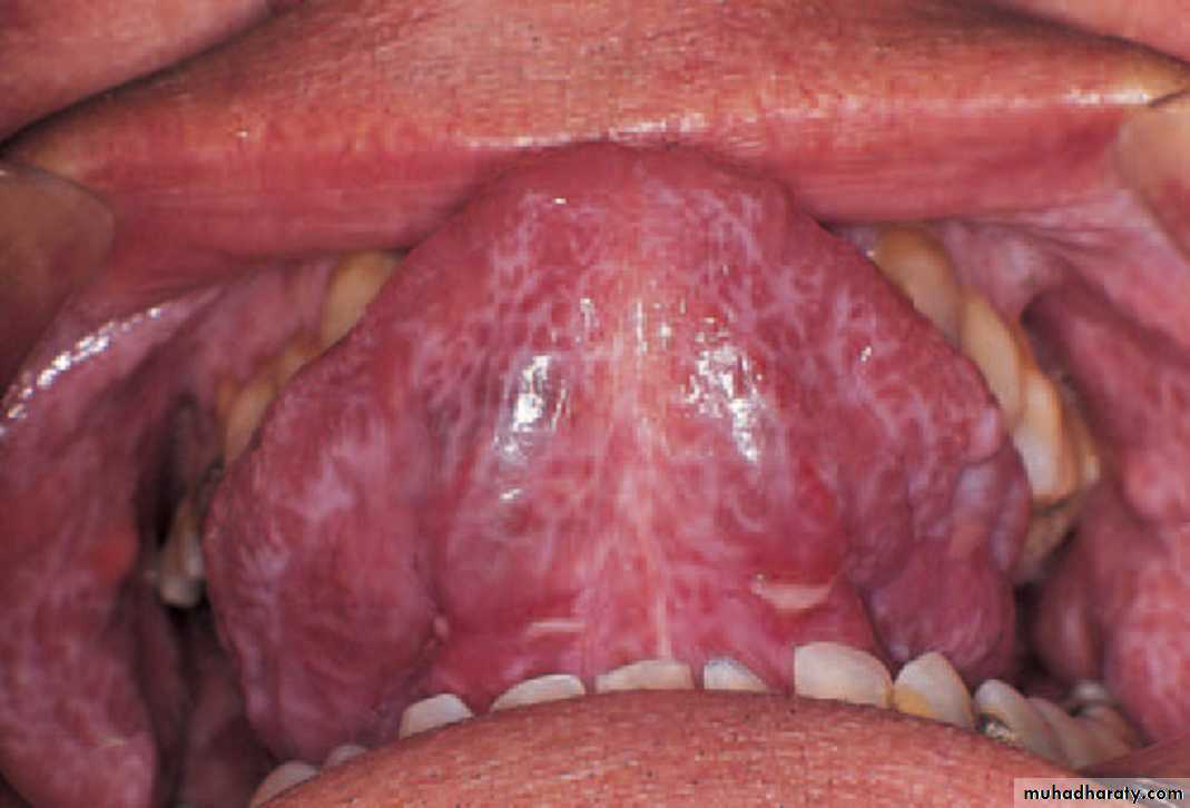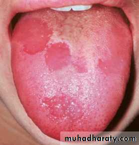• 1. Geographic tongue 2. Median rhomboid glossitis 3. Chronic atrophic candidiasis