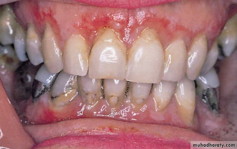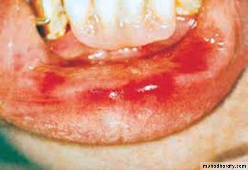 • Gingivae and lips are occasionally affected