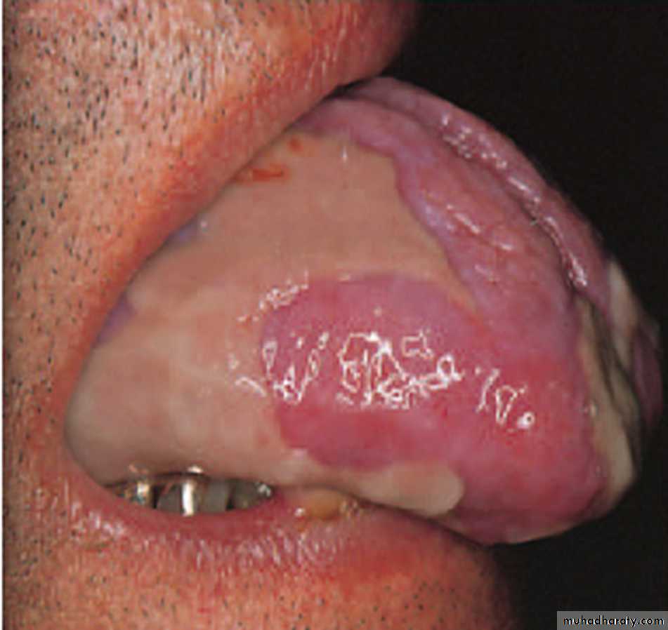 the tongue with atrophy and keratosis
