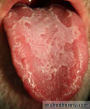 • Tongue, the 2nd most common affected site, on which the lesions found on the dorsum