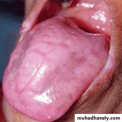 • Complete atrophy of the tongue in anemia & plummer vinson syndrome (Paterson–Brown–Kelly syndrome)•