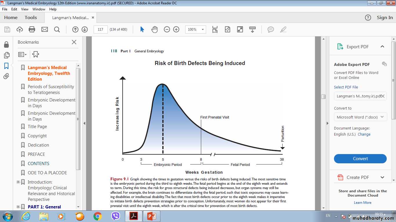 • Most major malformations are produced during the period of embryogenesis (Teratogenic period; third to eight weeks), but in stages before and after this time ,the fetus is also susceptible, so that no period of gestation is completely free of risk.