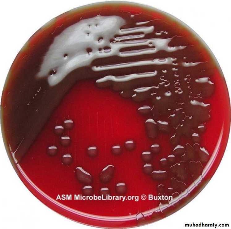 • Enriched media with blood or serum necessary for growth, produce alpha-hemolysin on blood agar growth is enhanced by 5-10% CO2.• On solid media: form a small round colonies dome-shaped at first, few hours later it undergoes some autolysis in the center of the colony and become flat while the edges are raised.