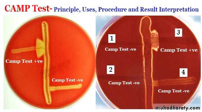 The CAMP factor produced by GBS acts synergistically with the staphylococcal β-hemolysin inducing enhanced hemolysis of sheep erythrocytes. Organism produces definitive arrow when close to Staphylococcus aureus.