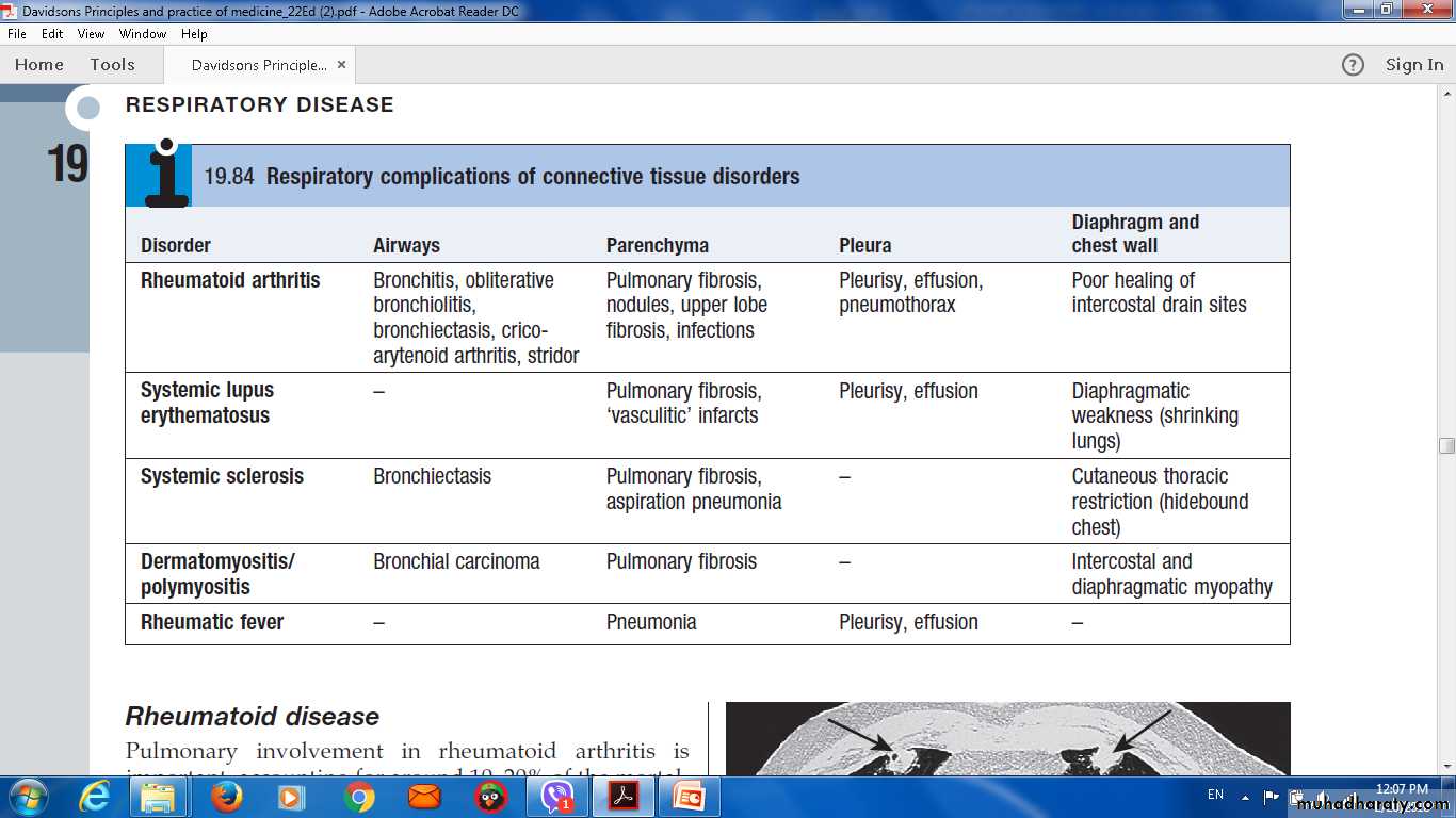 Respiratory complications of connective tissue disordersRheumatoid arthritis