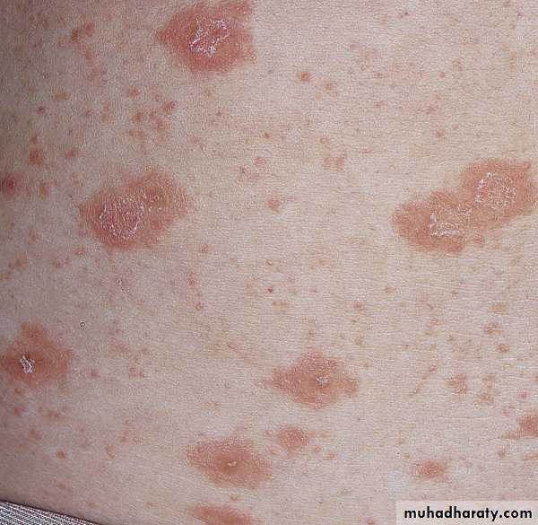 • Secondary syphilis.• Guttate psoriasis.