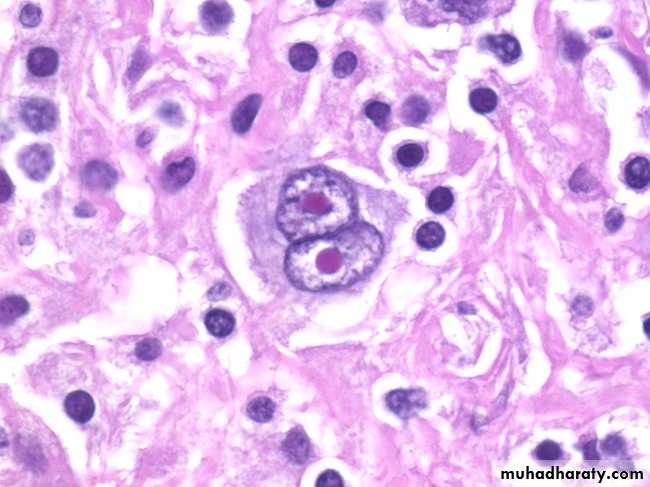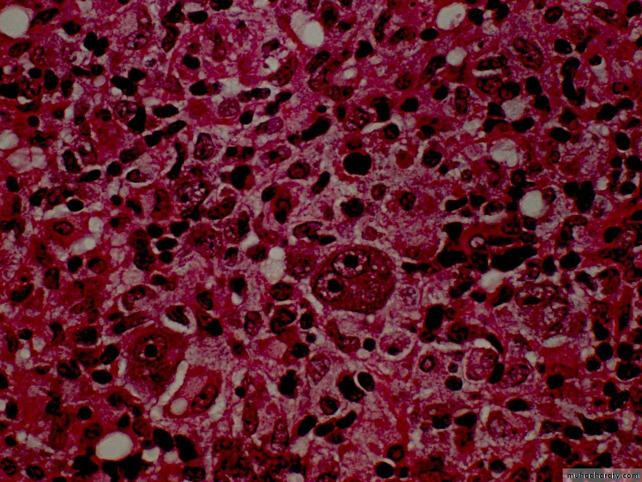 The classic Reed-Sternberg cell, as seen in all subtypes of