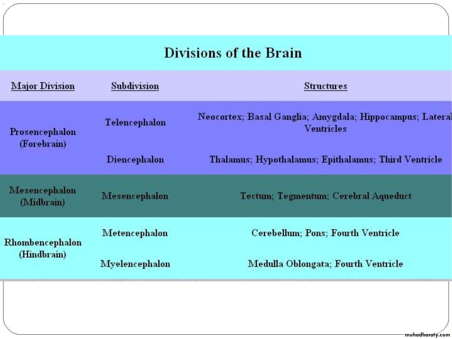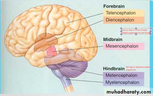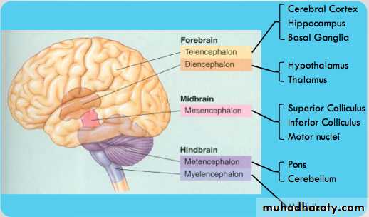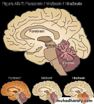 • Illustrative guide to the basic units of the brain: Forebrain/midbrain/ hindbrain