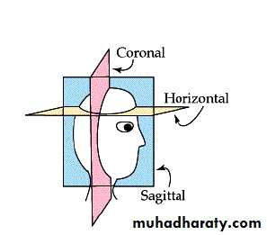 • Coronal (frontal): divides into front and back.• Sagittal: divides into twos sides.