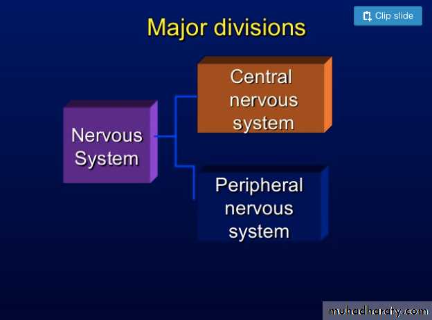 • Anatomical Divisions of the Nervous System• The nervous system is divided anatomically to:
