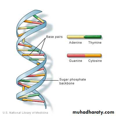 Double helixDNA consists of four nucleotides: adenine, cyostine, guanine, thymine (A, C, G, T)