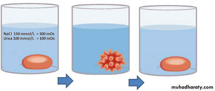 NaCl 150 mmol/L = 300 mOs Non-Penetrating substancesUrea 100 mmol/L = 100 mOs Penetrating substance