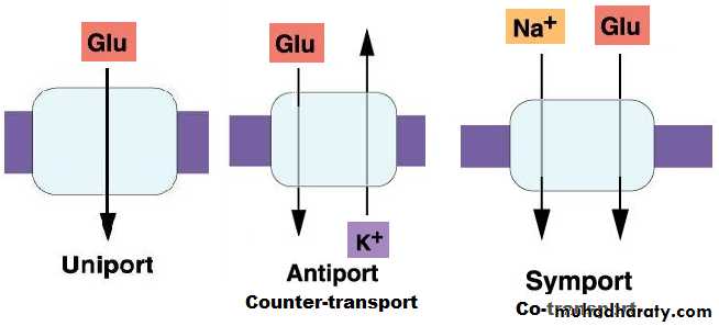 • Uniport, Antiport, or symport transport