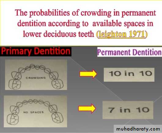 A- Crowding up to 2 mm must not treated because spontaneous correction by growth.B- Crowding 2-3 mm need for disking of primary lateral incisor and canine during eruption of permanent central incisor.