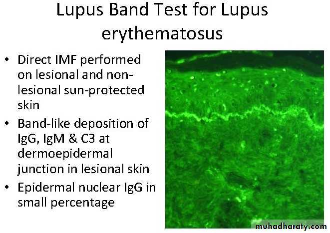 • zone {granular deposition of IgM, IgG, IgA, and C3 (lupus band test)}