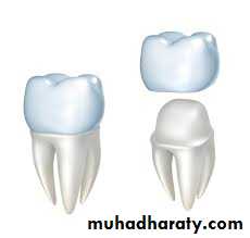 Crown: it is a fixed extracoronal restoration that restores missing tooth structure by surrounding most or all the remaining structure with material such as cast metal, ceramic, or a combination of materials such as metal and ceramic.Full veneer crown: is an extracoronal restoration that involves all of the surfaces of clinical crown of the tooth.