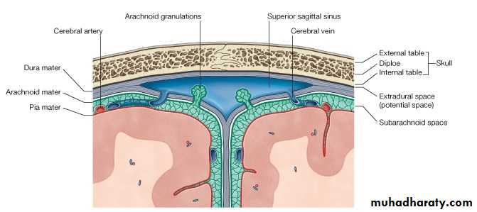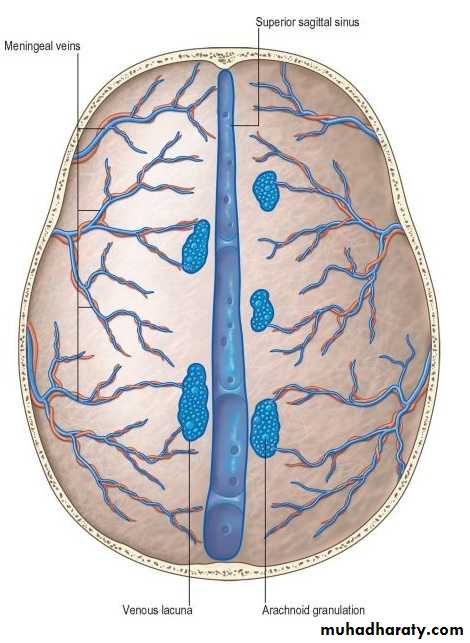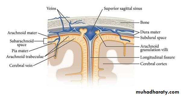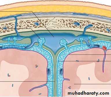 • Arachnoid villi: numerous projections to the venous sinus.