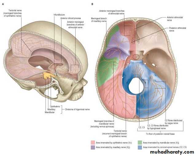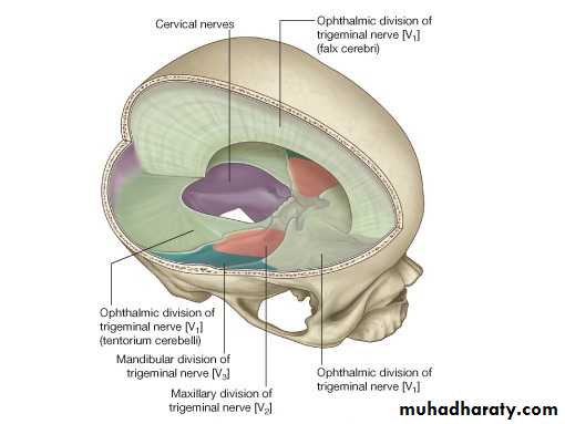 • Dura is sensitive to ?? --► headache• Dura of Posterior cranial fossa by branches from cervical spinal nerves (C1, C2 & C3)