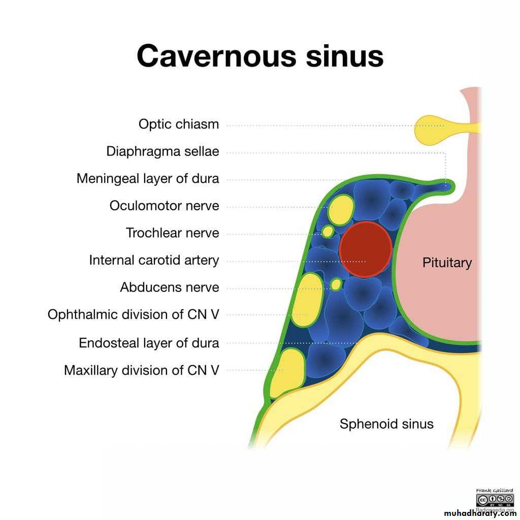 • Intercavernous sinuses connect the two cavernous sinuses through the sella turcica.