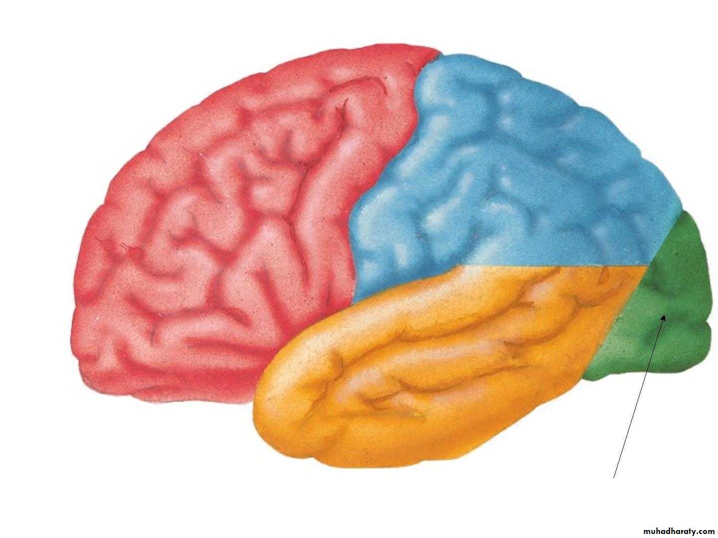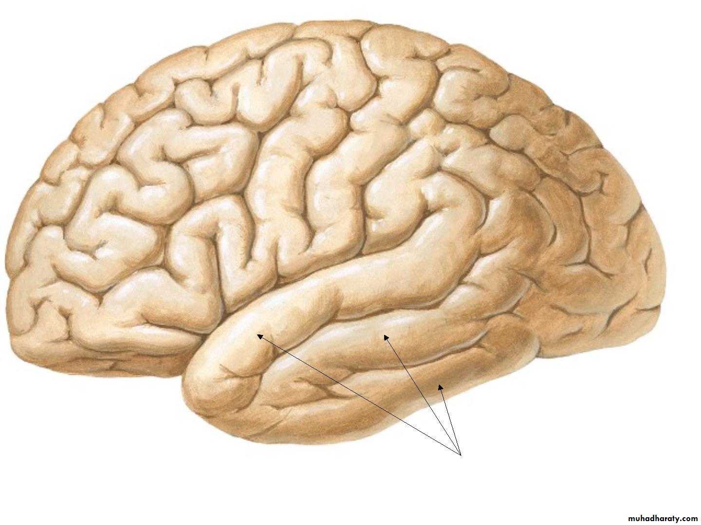 • 2. Temporal lobe(below the lateral sulcus),