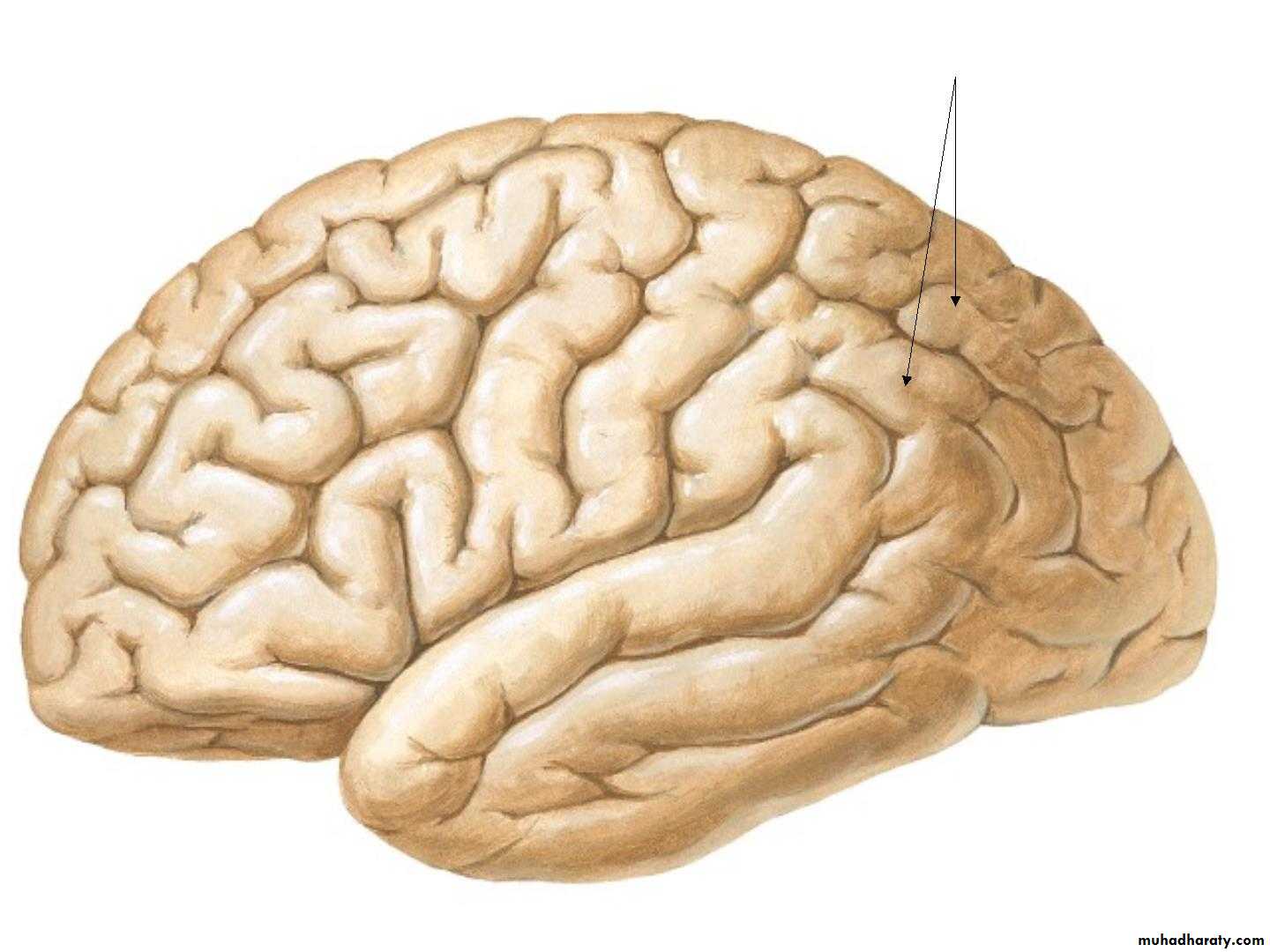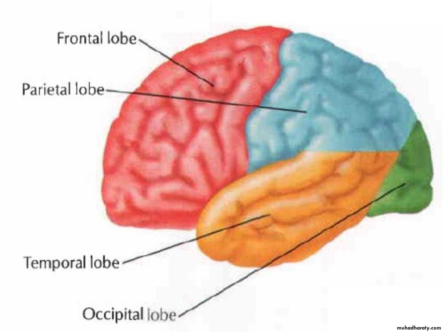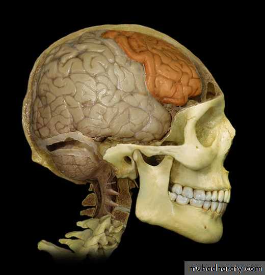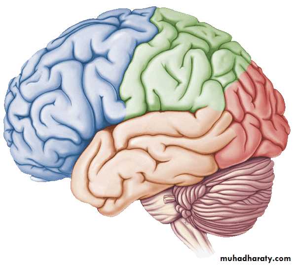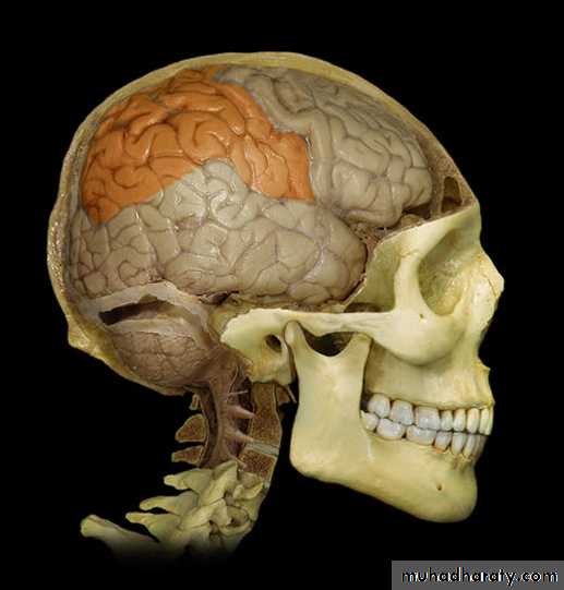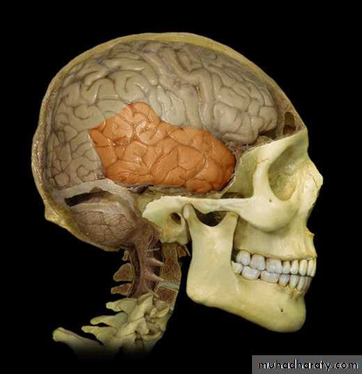 • 1. Frontal lobe (in front of the central sulcus• and above the lateral sulcus),