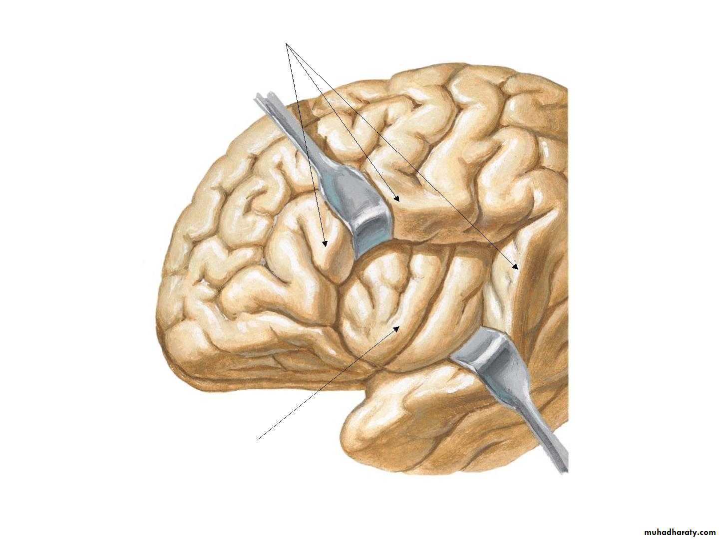 • 1. Central sulcus,• 2. Lateral sulcus,