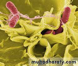 Invade small intestine and enter the bloodstreamCarried by white blood cells in the liver, spleen, and bone marrow