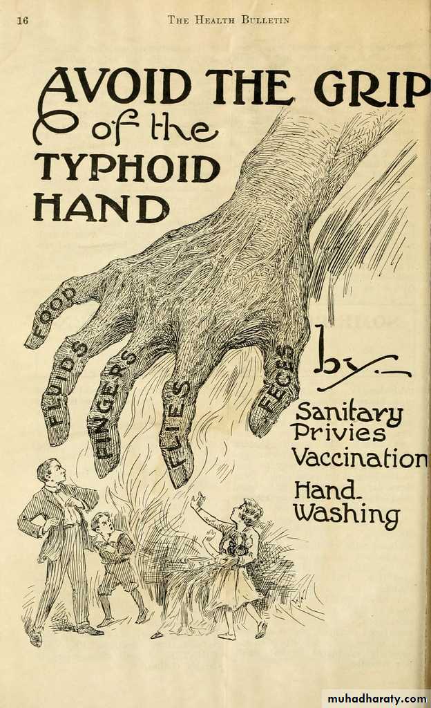 3. Contact with an acute case of typhoid fever.4. Water is contaminated where inadequate sewerage systems and poor sanitation.