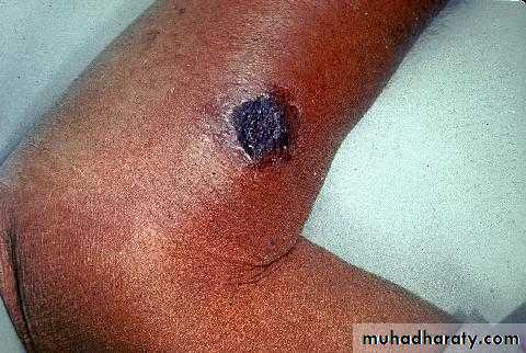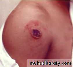 Most common form (95%) Papule, then vesicle, then necrotic ulcer (eschar) with black center