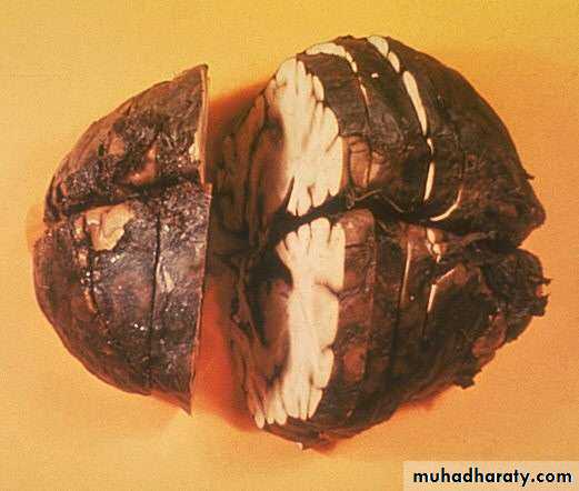 This is the samepicture as ( A.) but it has been dissected. The arrows point to the sign of infection.