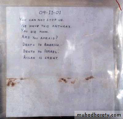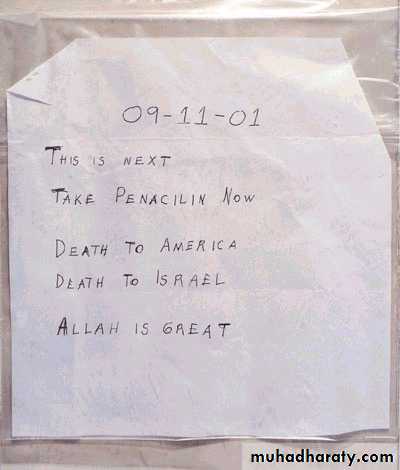 • 22 cases (11 inhalation, 11 cutaneous) in 4 states and DC• B. anthracis sent through U.S. mail